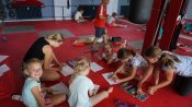 První den tábora jsme se všichni museli řádně seznámit s budoucími kamarády a parťáky ve skupině. A jelikož letos cestujeme časem,bylo nutné si sestrojit stroj času přesně podle návodu. Odpoledne jsme si užili aerobik a řádění na bosu.